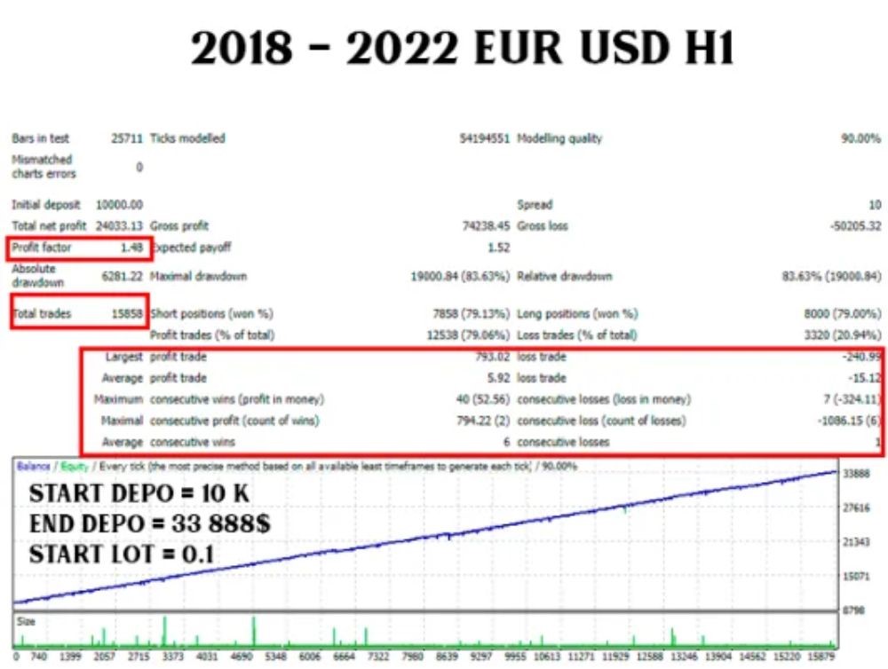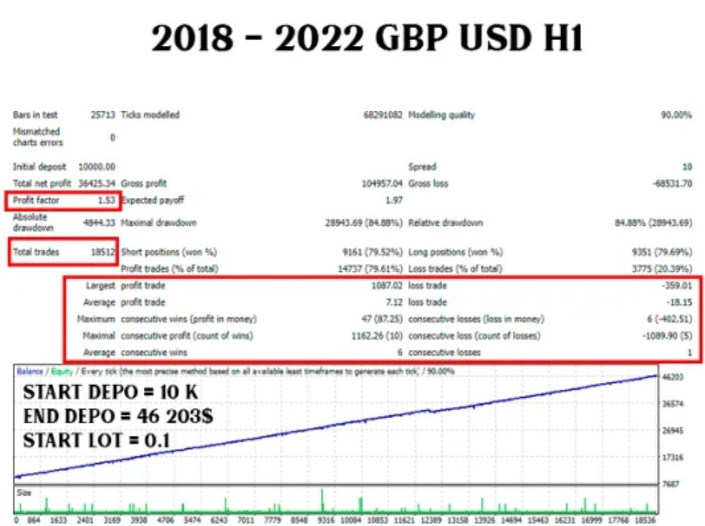 The backtesting performance of EA Ice Cube Scalper indicates high profitability. Backtested in the period 2018–2022 with a base capital of $10,000, the EA earned a total profit of $36,426 on GBPUSD and $24,033 on EURUSD. These results indicate its long-term profitability and stability in the forex market.