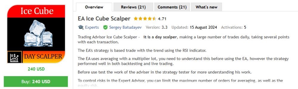 This is a product by Sergey Batudayev, a Ukrainian programmer with over 2 years of experience on MQL5. He has had some of his best products, including GoldPro MT5 and EA Long Term MT5, and EA Ice Cube Scalper being his top-performing Expert Advisor.